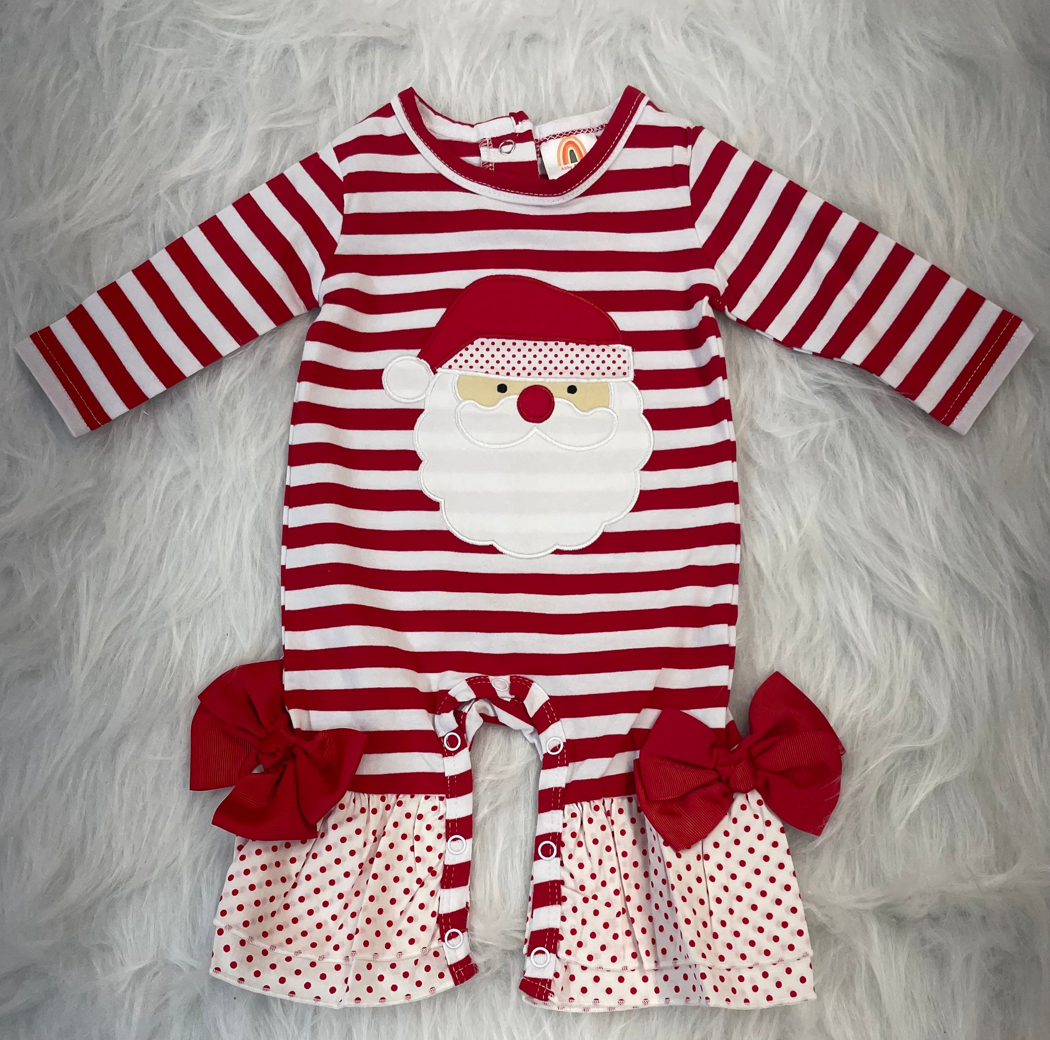 Red Santa Claus Stripe Ruffle Romper